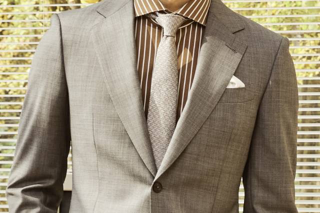 - Closure: Two-button front closure on jacket, zip-fly with hook closure on trousers, button-down on shirt.
